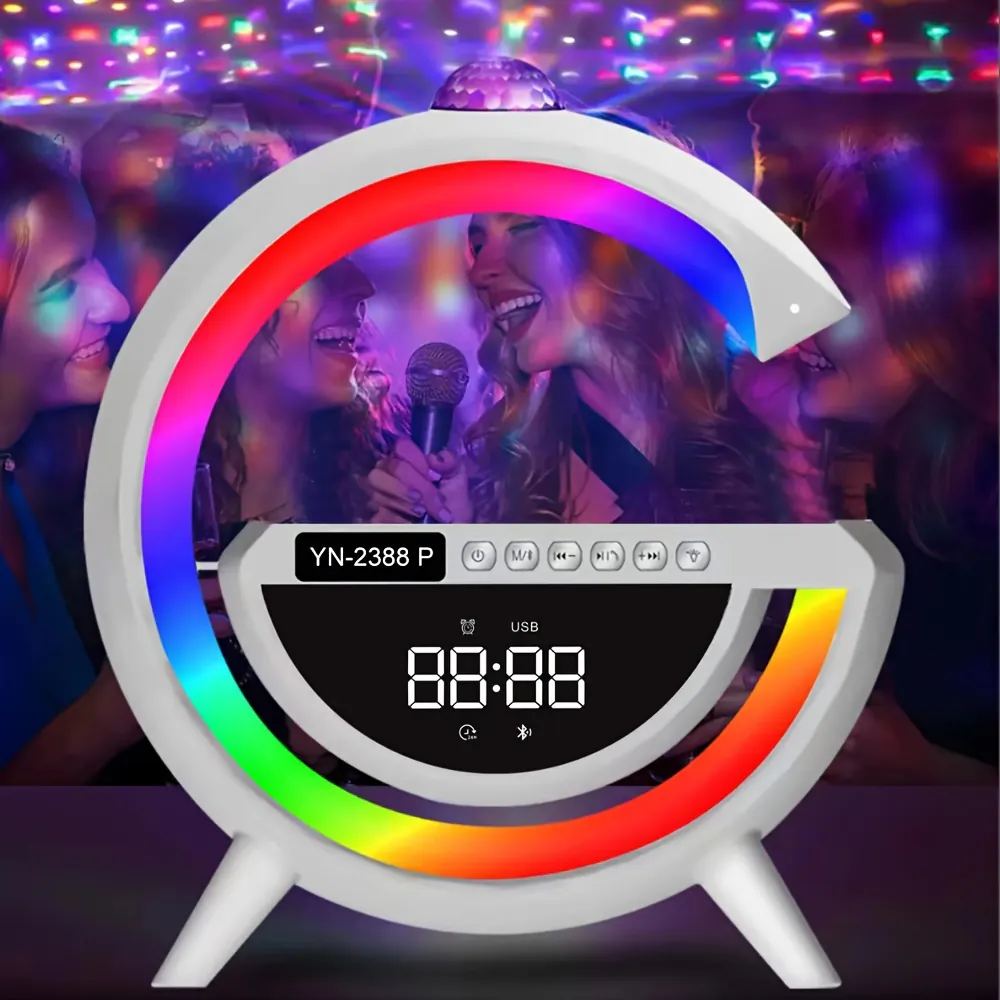 YN-2388P فراتر از یک اسپیکر ساده است؛ با طراحی منحصربهفرد G شکل، قابلیت شارژ بیسیم، و رقص نور هماهنگ با موسیقی، به سرعت به مرکز توجه در هر اتاق یا میز کار شما تبدیل خواهد شد.